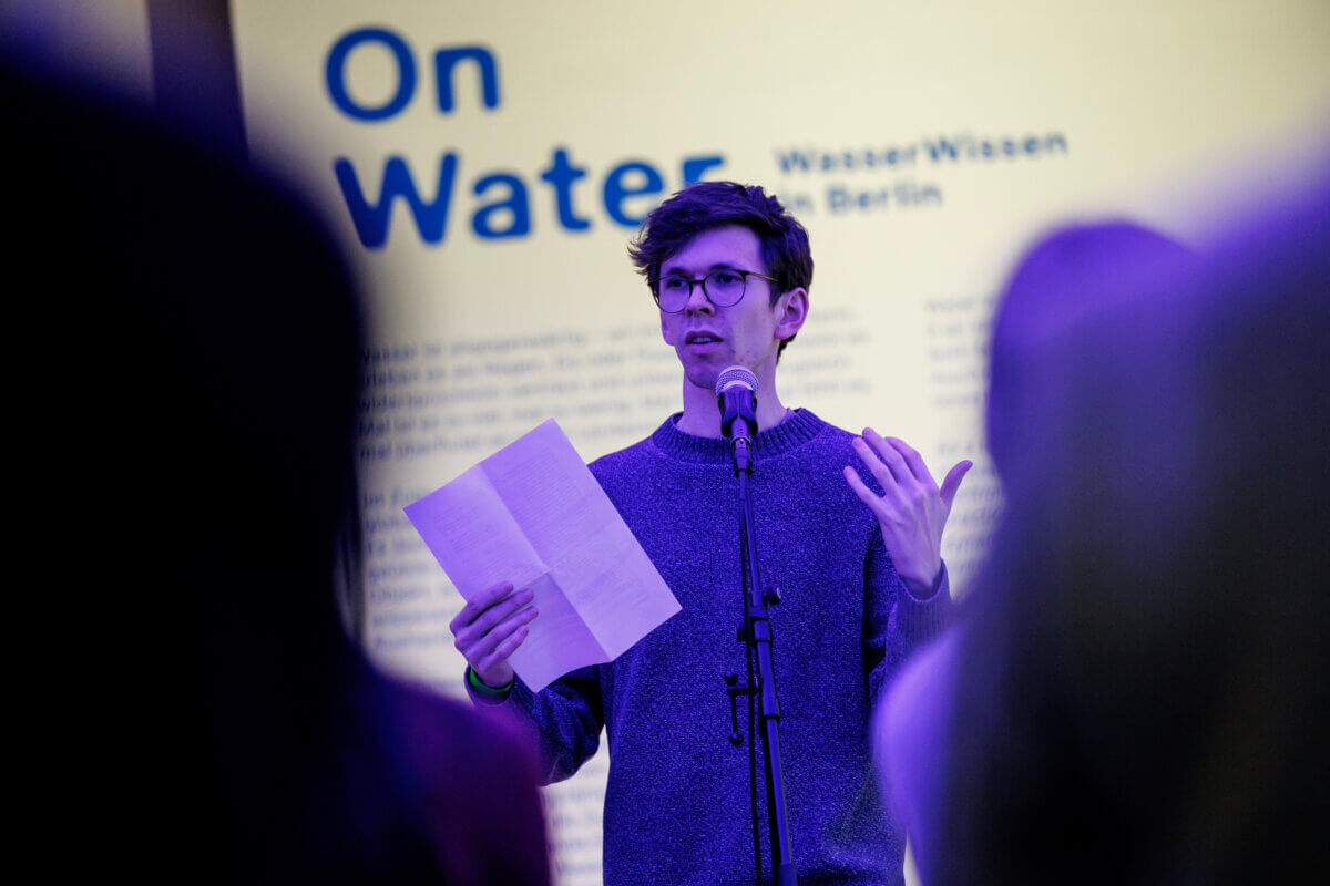 Die Ausstellung „On Water“ präsentiert vielfältige Berliner Forschungsprojekte zum Wasser. In der 90-minütigen inklusiven Führung werden die Ausstellungsinhalte in Deutscher Gebärdensprache (DGS) vermittelt.